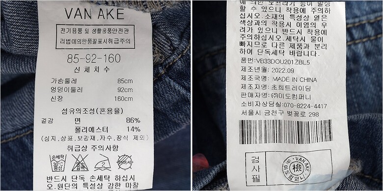 | 1. 제품 소재 (섬유의 조성 또는 혼용률을 백분율로 표시, 기능성인 경우 성적서 또는 허가서) | 겉감-면86% 폴리에스터14% |