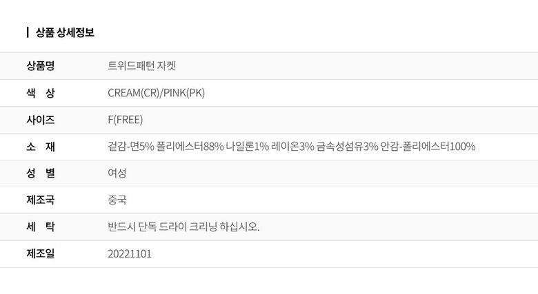 | 6. 세탁방법 및 취급시 주의사항 | 상세페이지 참조 |