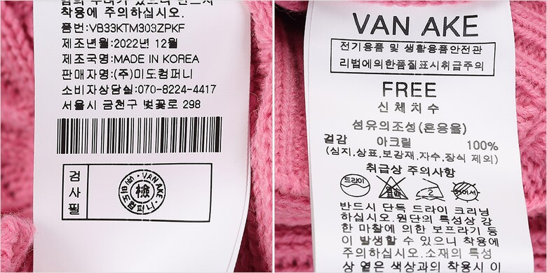 | 1. 제품 소재 (섬유의 조성 또는 혼용률을 백분율로 표시, 기능성인 경우 성적서 또는 허가서) | 겉감-아크릴100% |