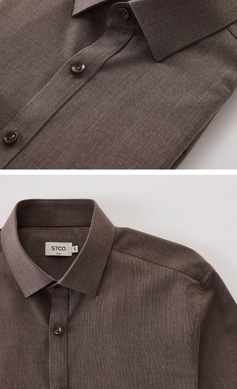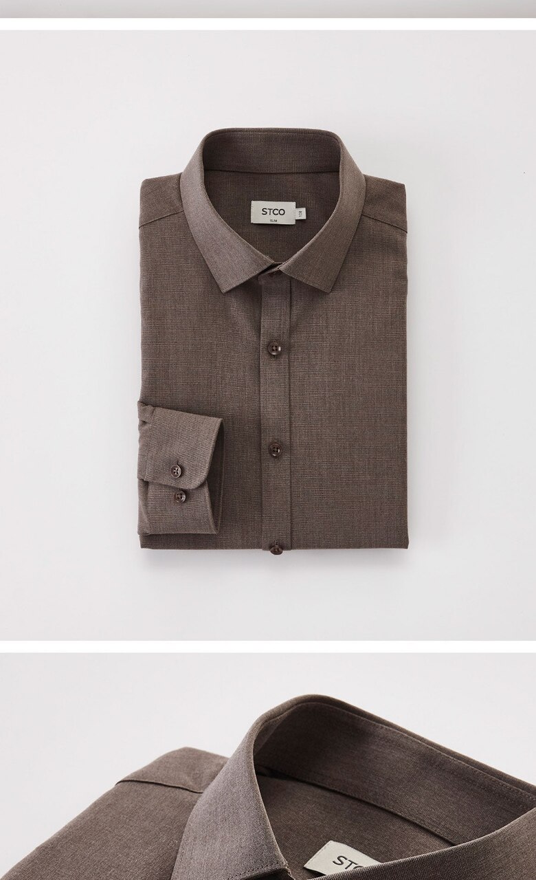 슬림핏 카치온 솔리드 셔츠 (브라운)