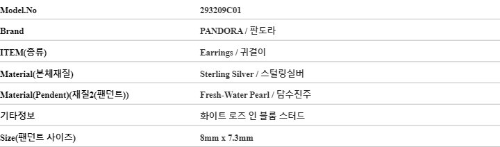판도라 귀걸이 293209C01 모먼트 화이트 로즈 인 블룸 스터드 실버 여성귀걸이 여자귀걸이 당일발송