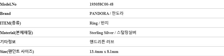 판도라 반지 193058C00 모먼트 핸드리튼 러브 실버 여성반지 여자반지 당일발송