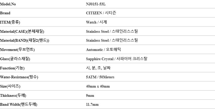 시티즌 시계 NJ0151-53L 남성메탈시계 당일발송