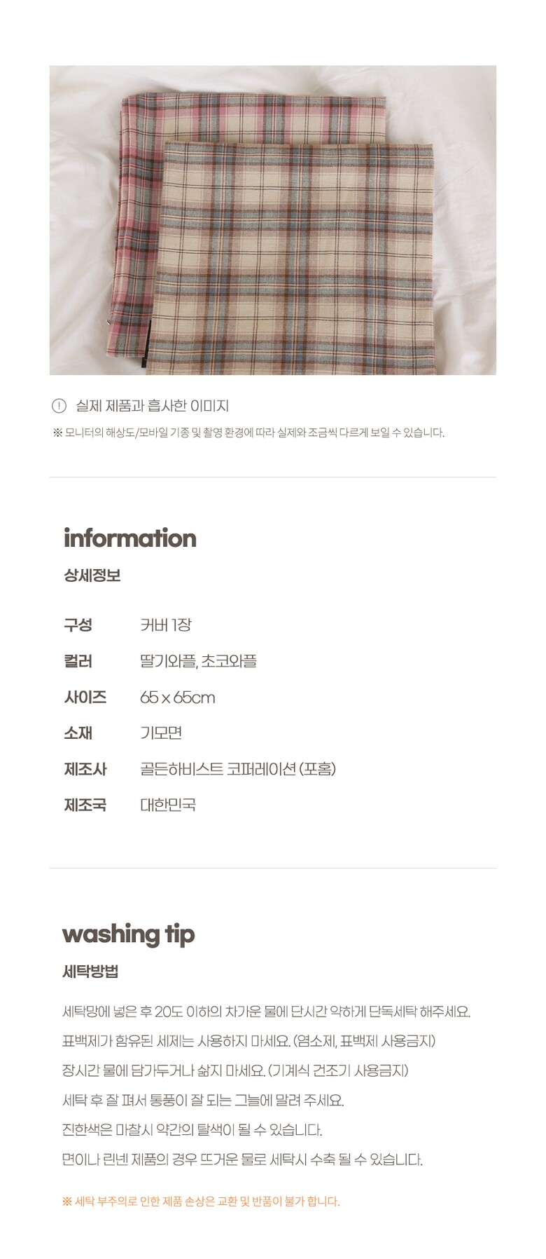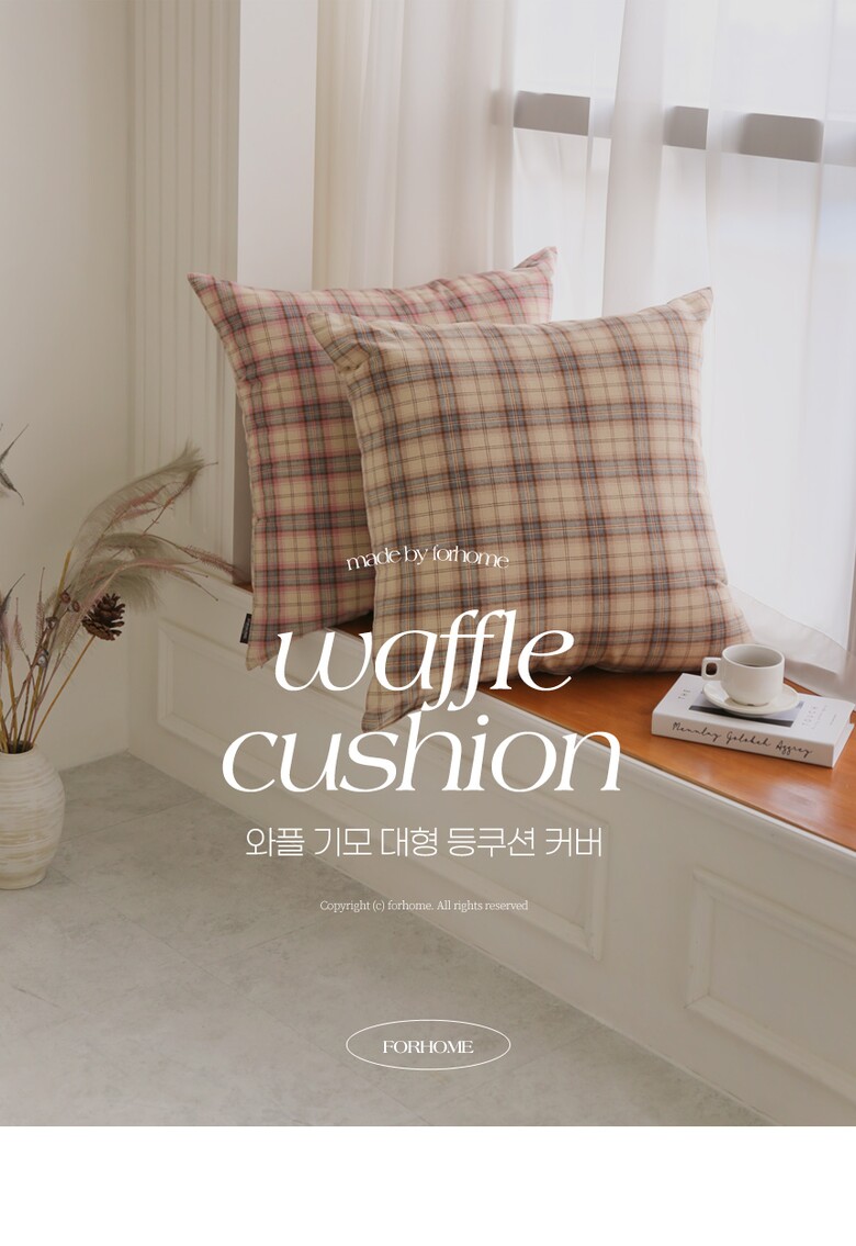 와플 기모 체크 대형 등쿠션 커버 65x65cm