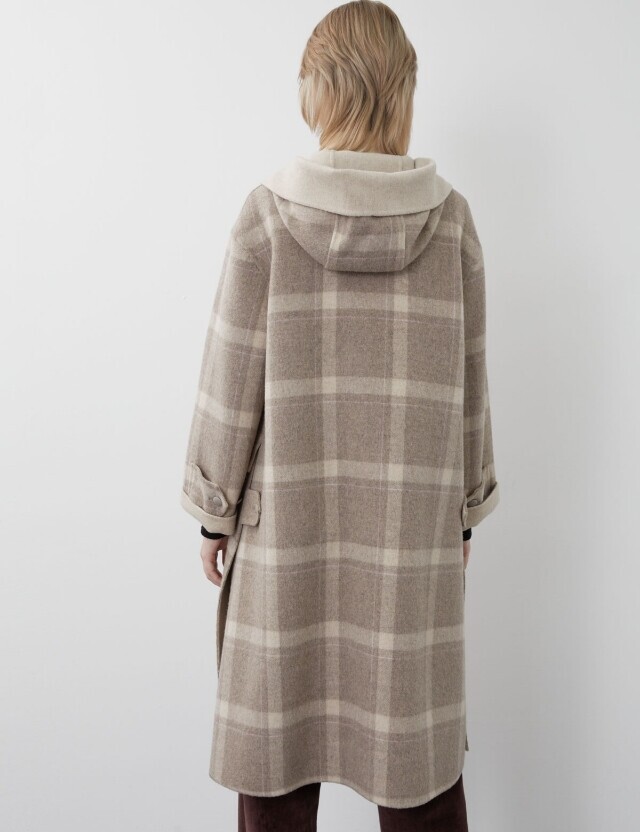 은은한 체크 패턴이 돋보이는 후두 집업 핸드메이드