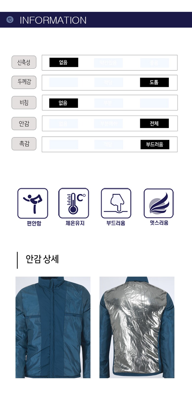1. 제품 소재 (섬유의 조성 또는 혼용률을 백분율로 표시, 기능성인 경우 성적서 또는 허가서) 상세설명참고