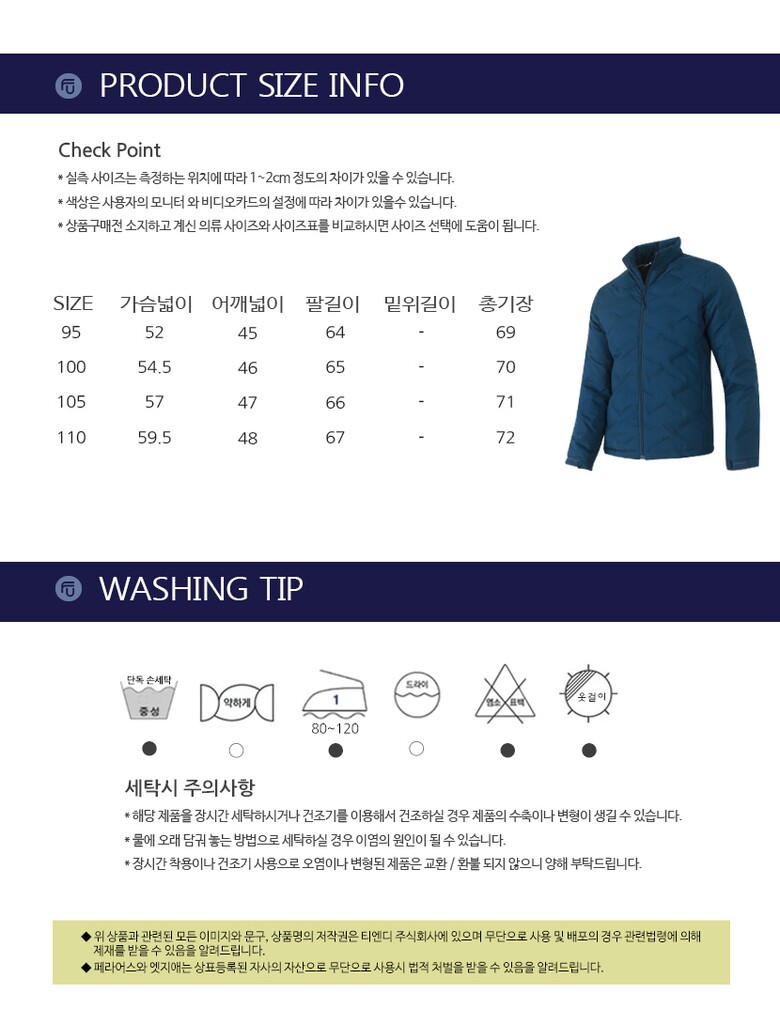 6. 세탁방법 및 취급시 주의사항 상세설명참고