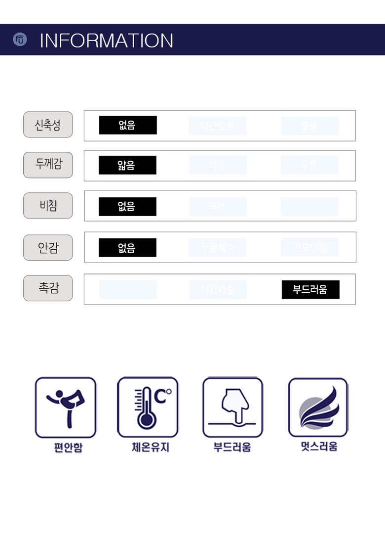 1. 제품 소재 (섬유의 조성 또는 혼용률을 백분율로 표시, 기능성인 경우 성적서 또는 허가서) | 상세설명참고 |