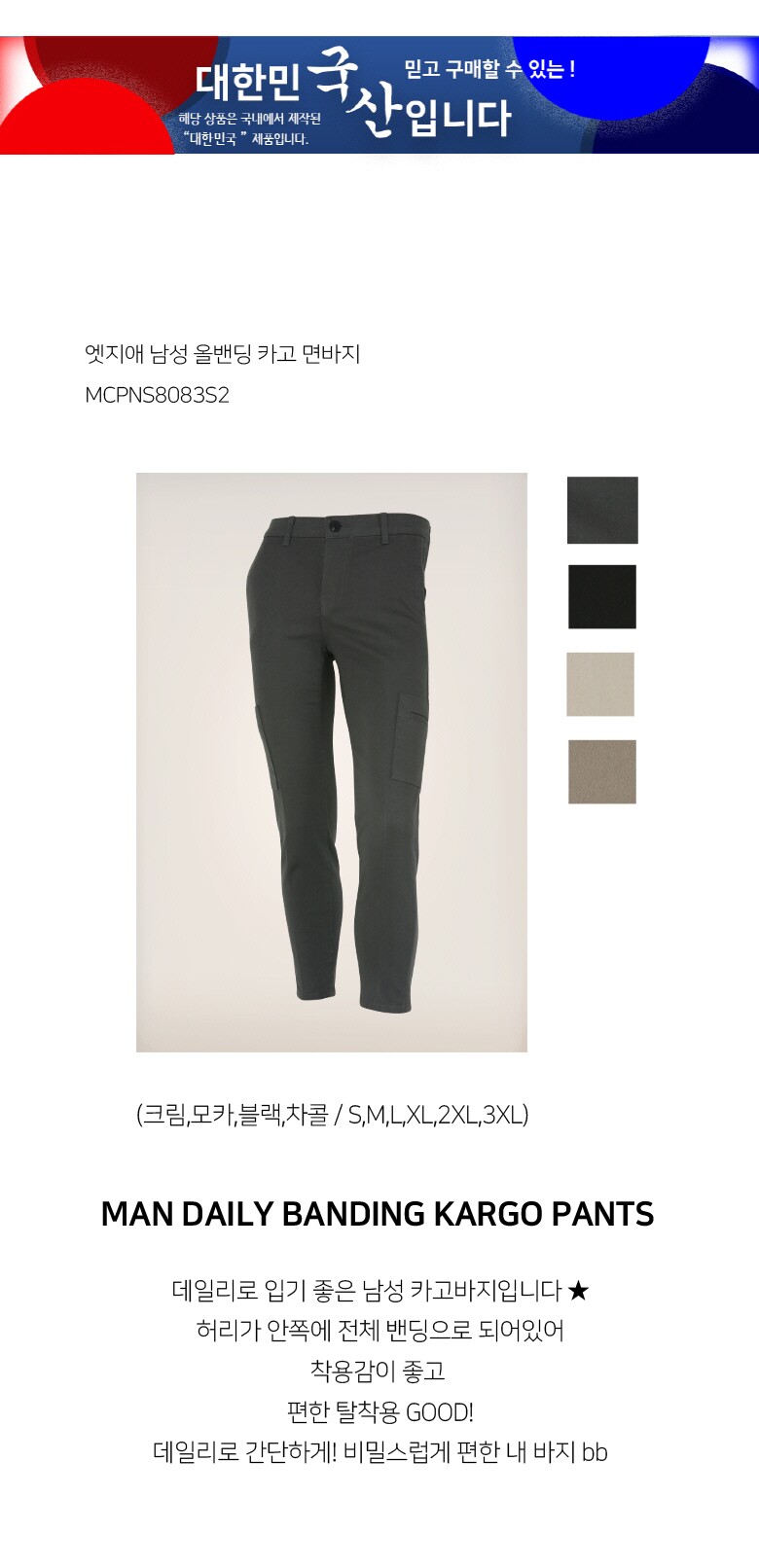 엣지애 남성 올밴딩 카고 면바지 MCPNS8083S2