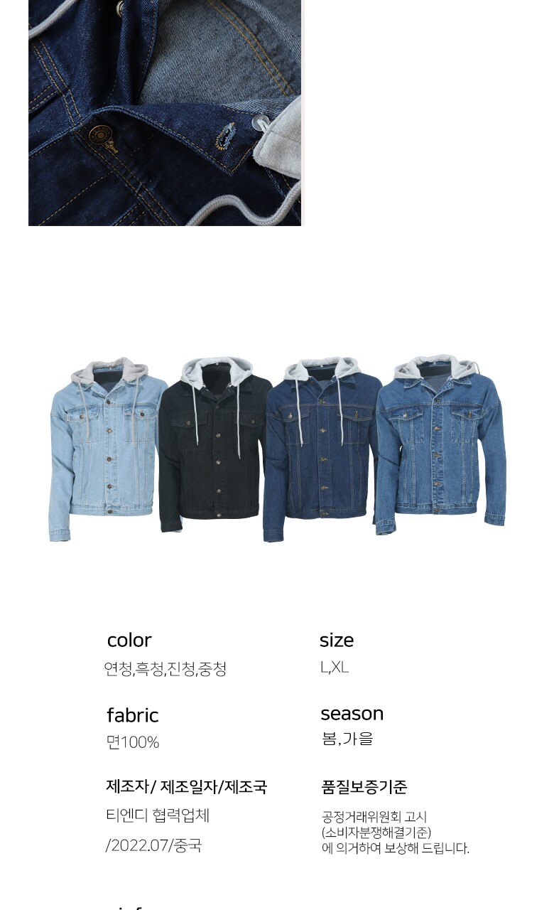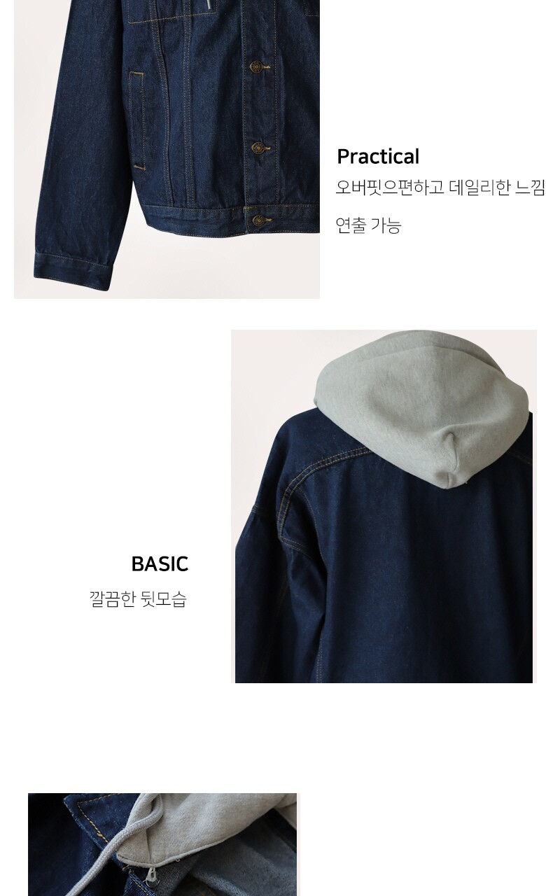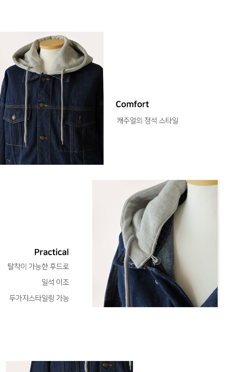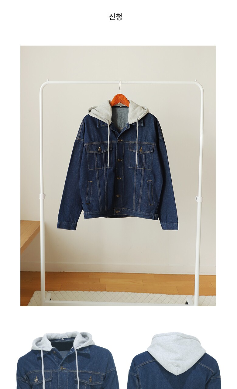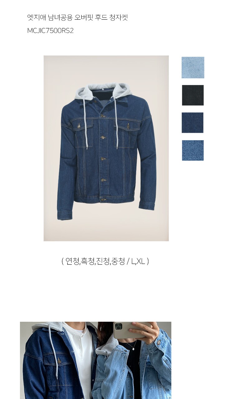 엣지애 남녀공용 오버핏 후드 청자켓 MCJIC7500RS2