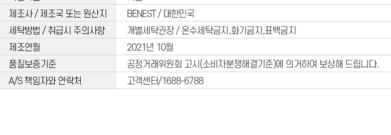 1. 제품 소재 (섬유의 조성 또는 혼용률을 백분율로 표시, 기능성인 경우 성적서 또는 허가서) 상세설명참고