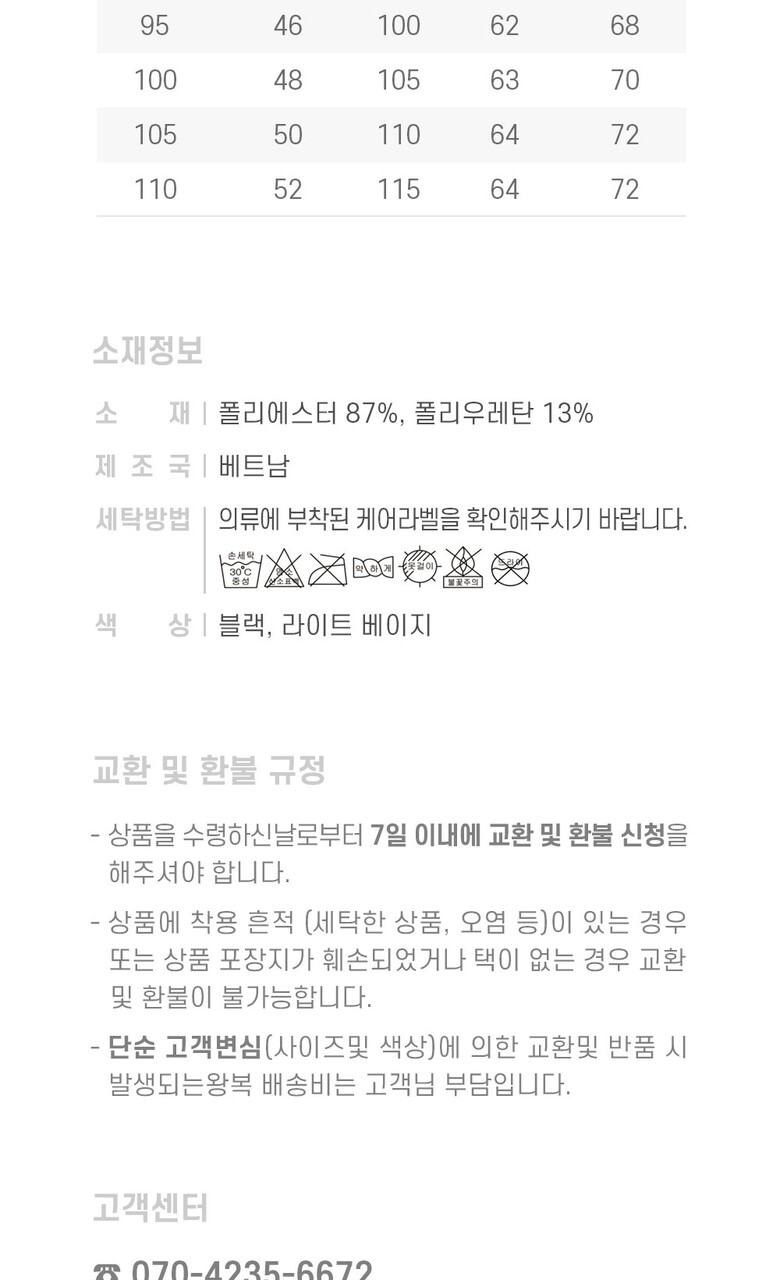 6. 세탁방법 및 취급시 주의사항 | 상품상세참조 |
