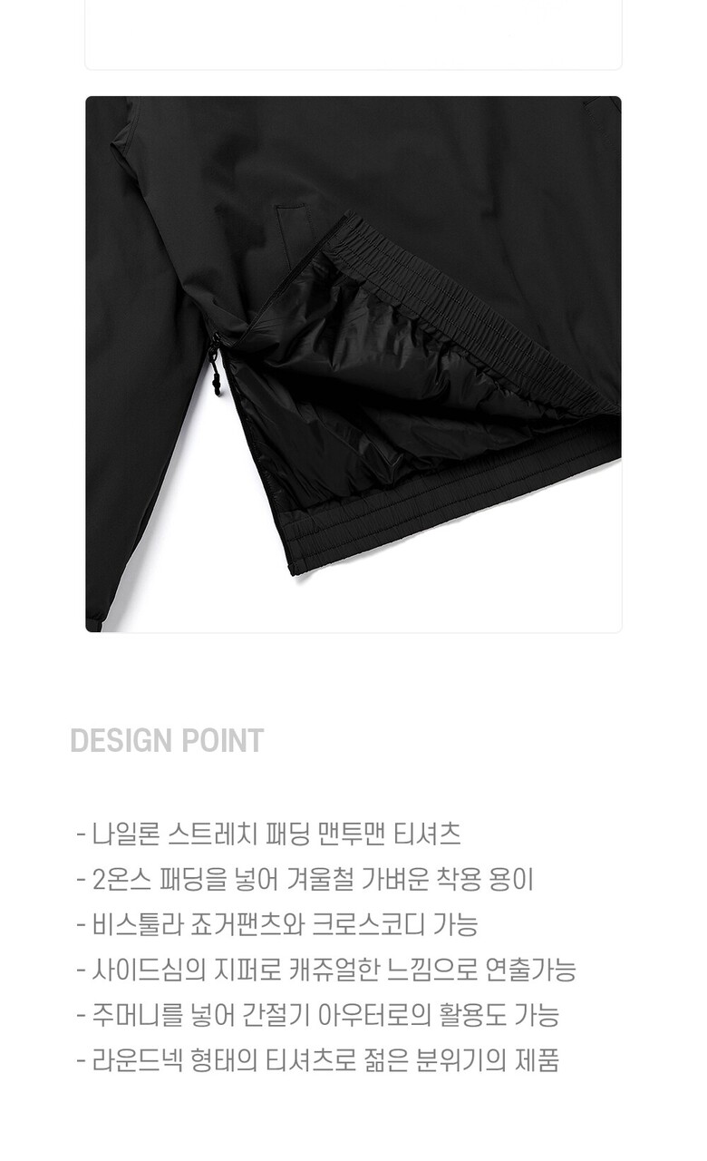 캐쥬얼한 느낌의 패딩 맨투맨 티셔츠