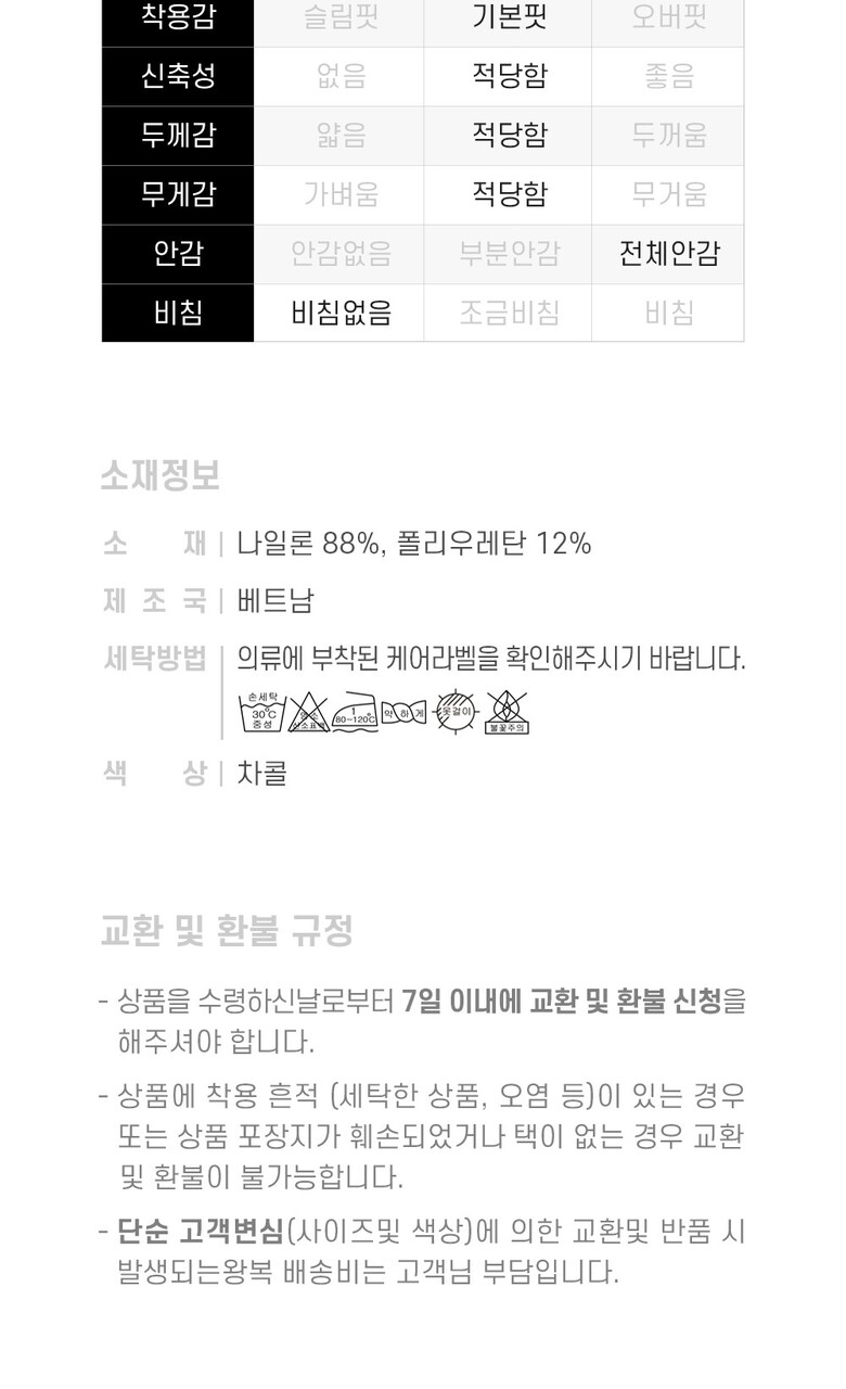 6. 세탁방법 및 취급시 주의사항 | 상품상세참조 |