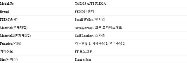 펜디 7M0303 AJF8 F1EGA FF 모노그램 반지갑