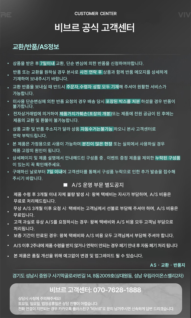 11. A/S책임자와전화번호 비브르고객센터 : 070-7628-1888