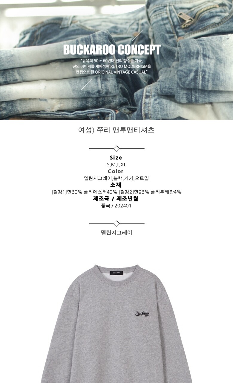 [버커루] 여성) 쭈리 맨투맨티셔츠 (B245Z1060P)