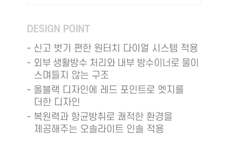 1. 제품 소재 (운동화인 경우에는 겉감, 안감을 구분하여 표시) | 상품상세참조 |