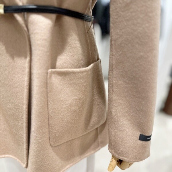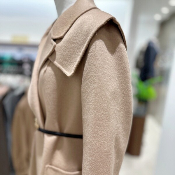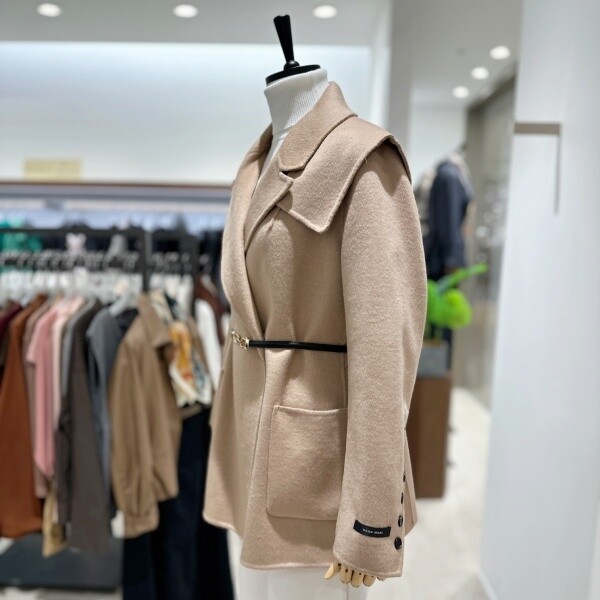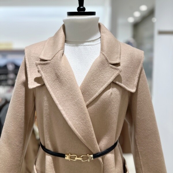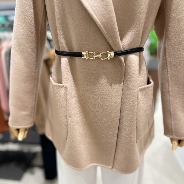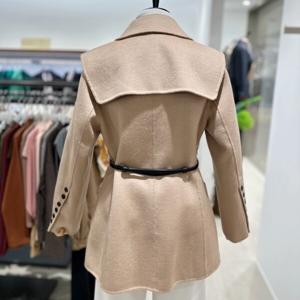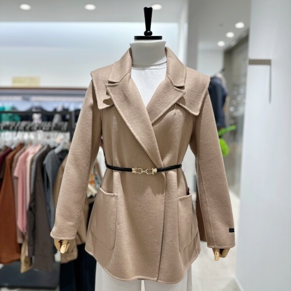 벨트가 포인트이며 울 캐시미어 혼방으로 고급스러운 소재감의 여성 재킷입니다