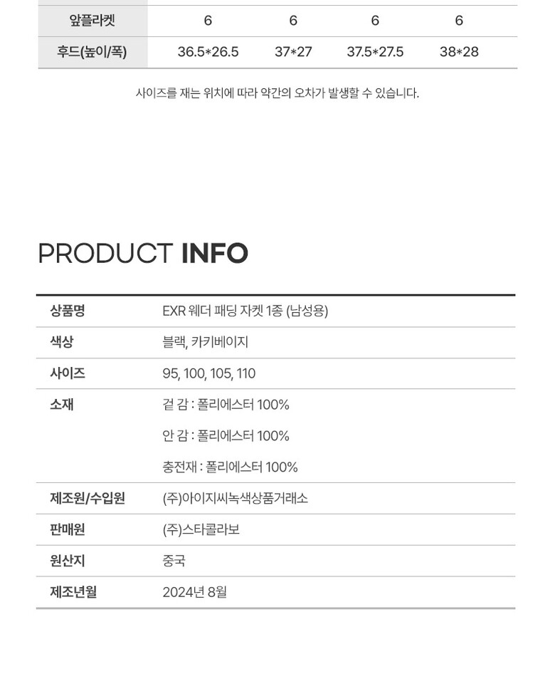| 3. 치수 | 95,100,105,110 |
