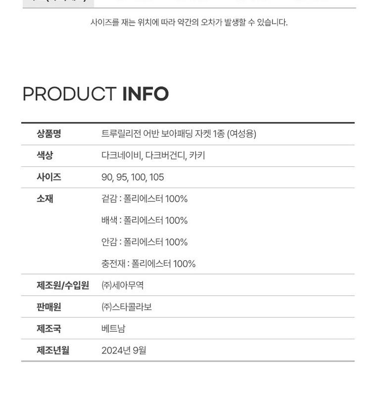 1. 제품 소재 (섬유의 조성 또는 혼용률을 백분율로 표시, 기능성인 경우 성적서 또는 허가서) | 폴리에스터 100% |