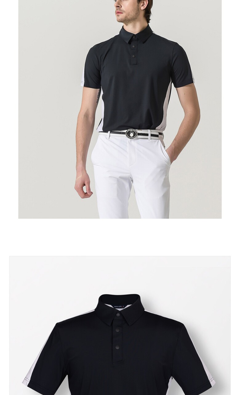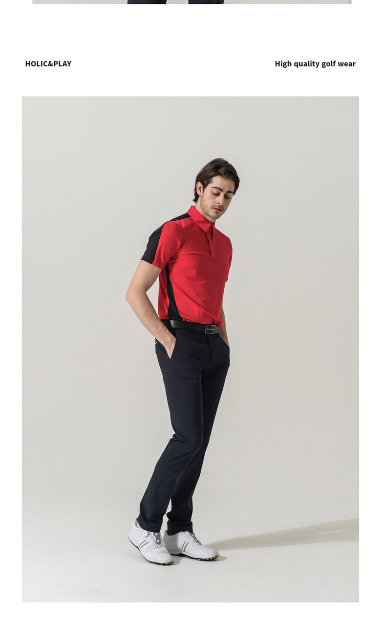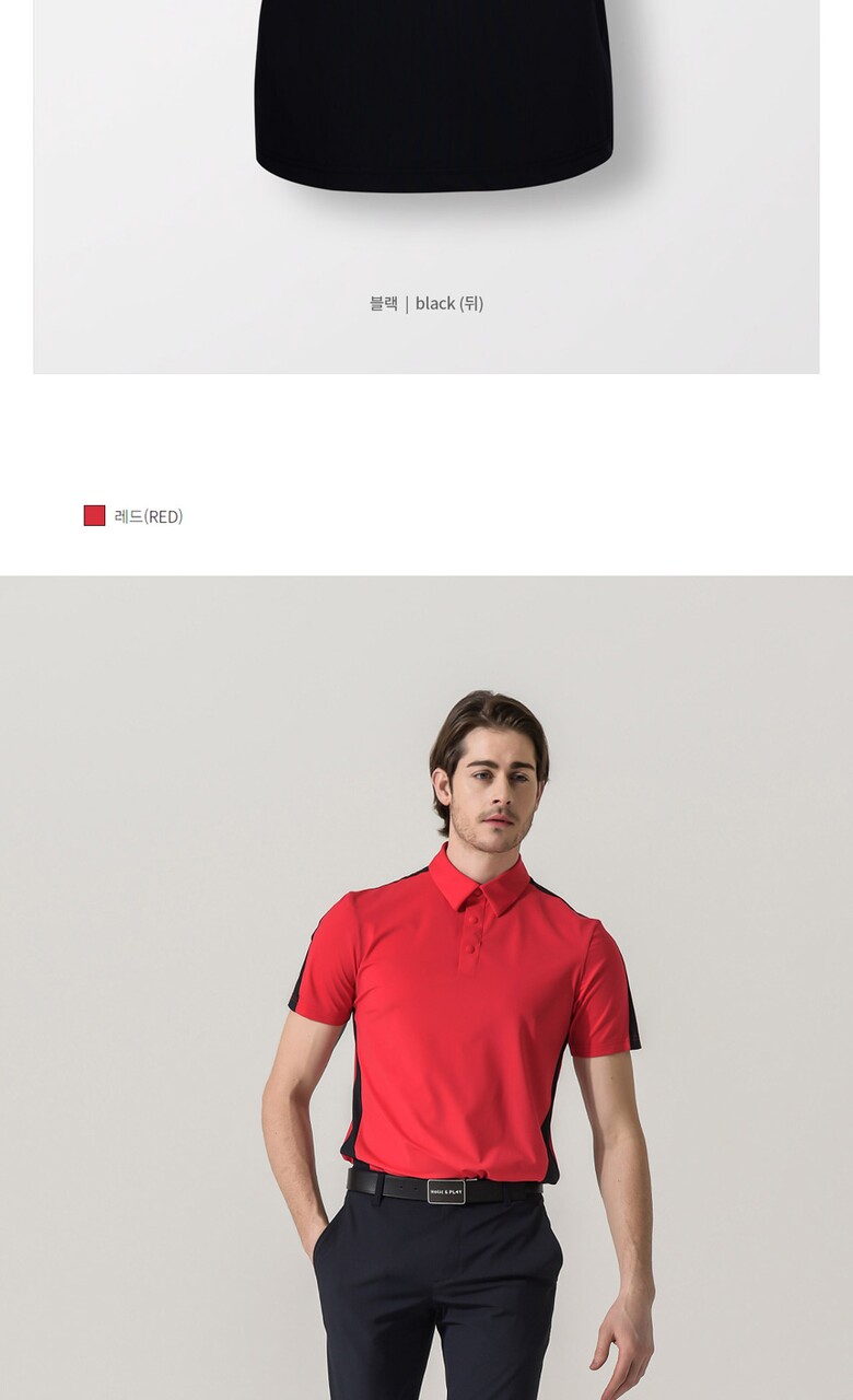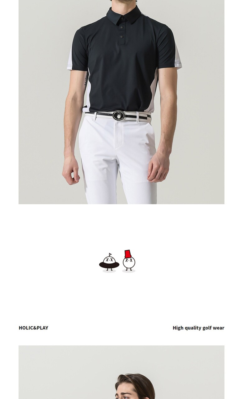 홀릭앤플레이 남성 스판 배색 반팔티셔츠-HB2MTS012