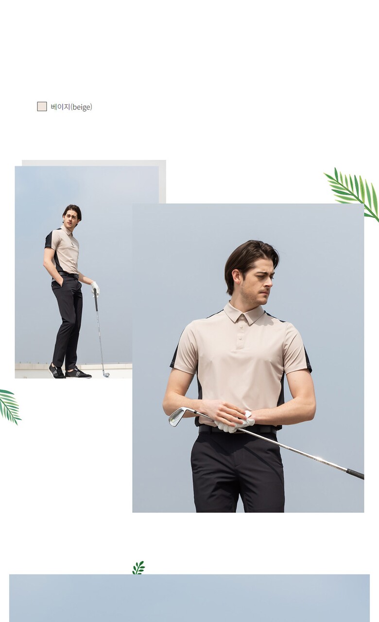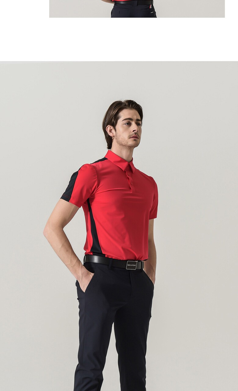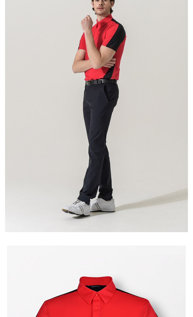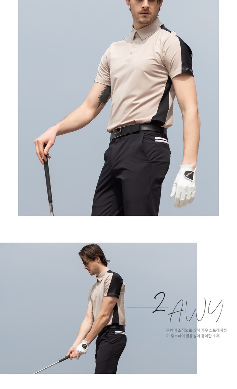 홀릭앤플레이 남성 스판 배색 반팔티셔츠-HB2MTS012