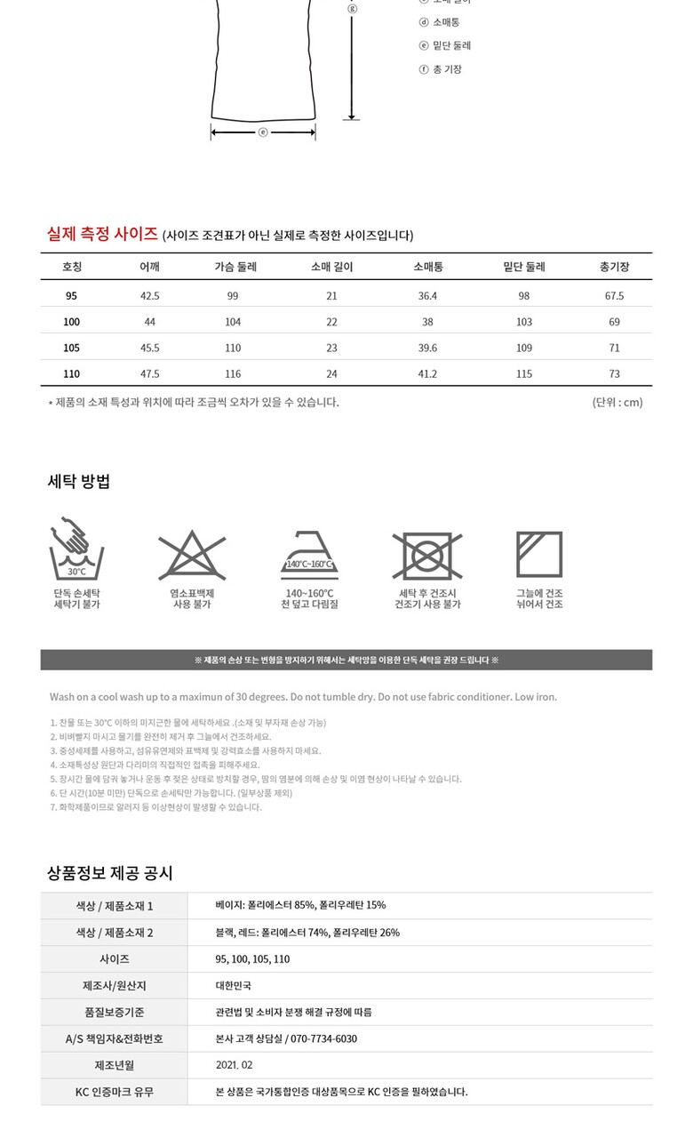 | 6. 세탁방법 및 취급시 주의사항 | 상품 이미지 참조 |