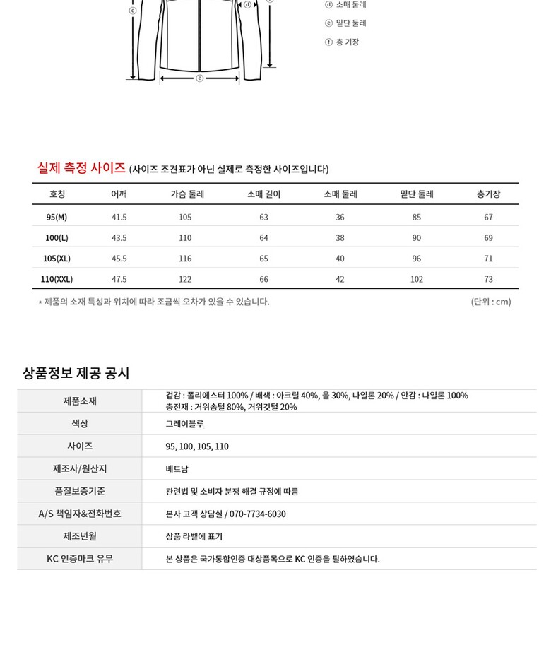 1. 제품 소재 (섬유의 조성 또는 혼용률을 백분율로 표시, 기능성인 경우 성적서 또는 허가서) 상품 이미지 참조