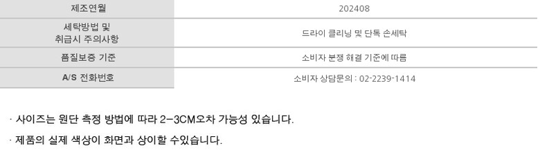 • 처음 배송된 상품상태와 다를 경우(세탁/착용 후 외출하신 경우) 반품이 불가합니다.