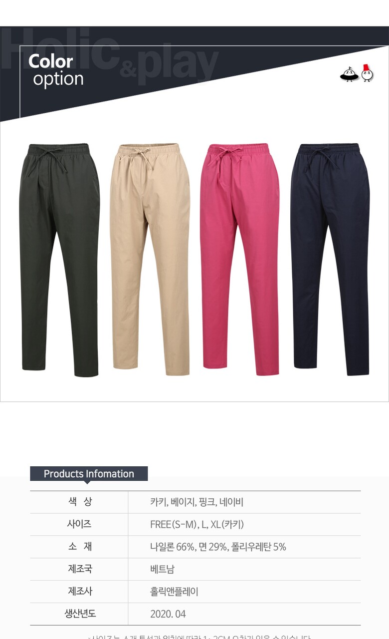 홀릭앤플레이 남 유니섹스 밴딩 골프바지 HA2WPT014