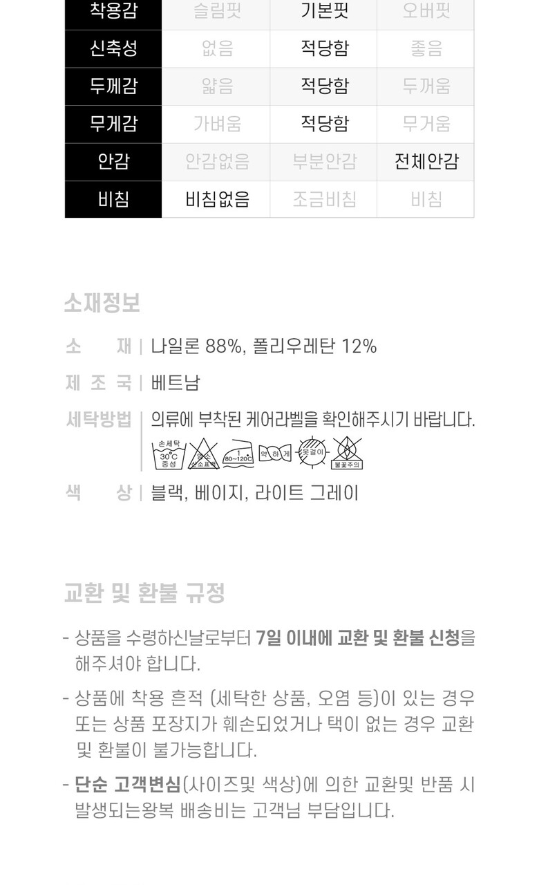 1. 제품 소재 (섬유의 조성 또는 혼용률을 백분율로 표시, 기능성인 경우 성적서 또는 허가서) | 상품상세참조 |