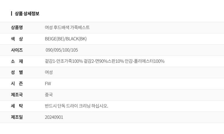 [팜스프링스] 여성 후드배색 가죽베스트_SWVL244683