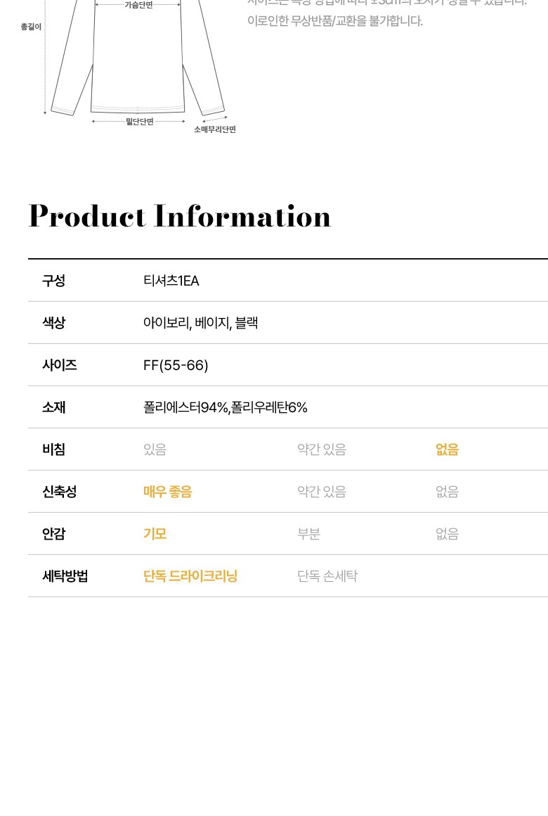• 처음 배송된 상품상태와 다를 경우(세탁/착용 후 외출하신 경우) 반품이 불가합니다.