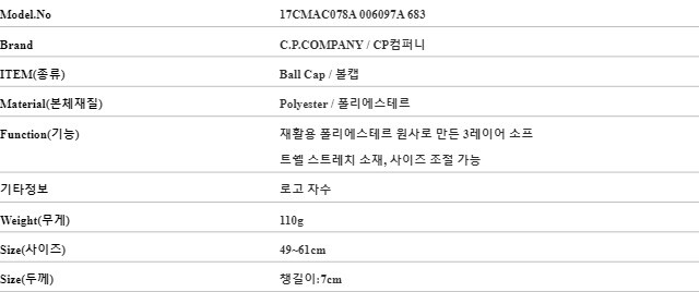 CP컴퍼니 모자 17CMAC078A 006097A 683 쉘 R 로고 자수 남성모자 당일발송