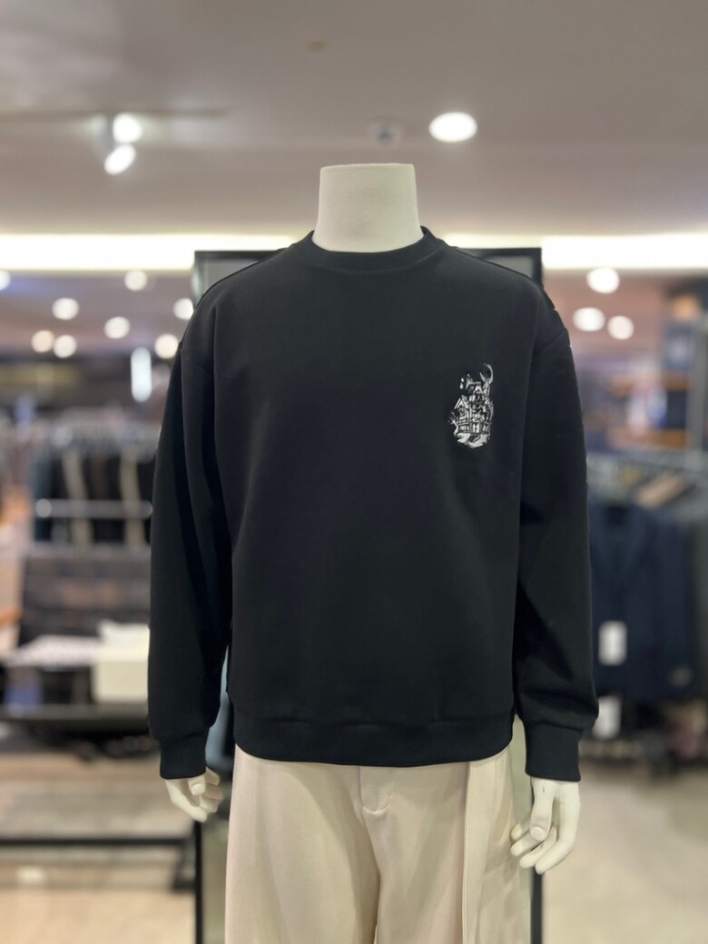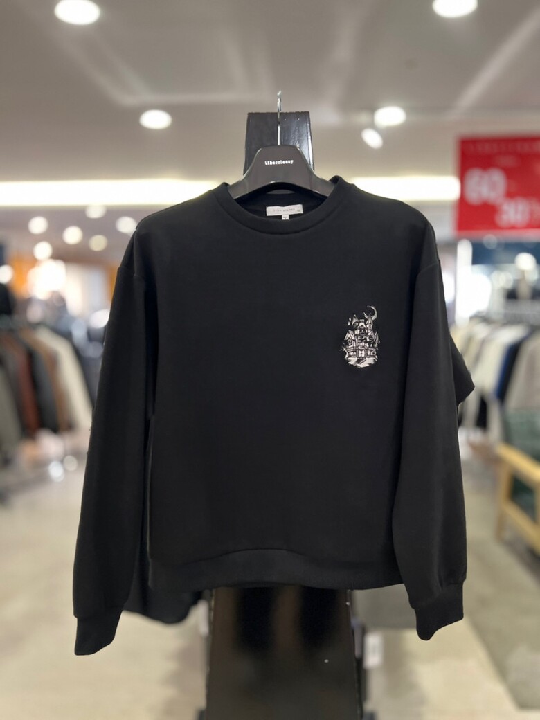 리버클래시 블랙 아트워크 자수 포인트 오버핏 맨투맨 티셔츠 LKF41410