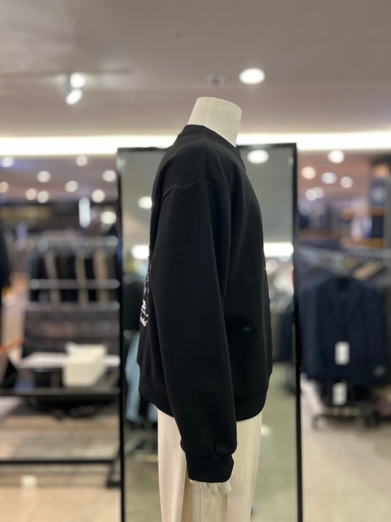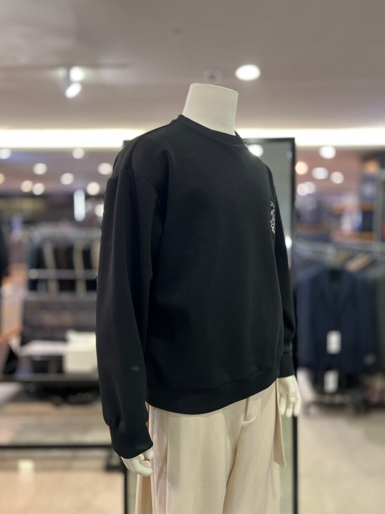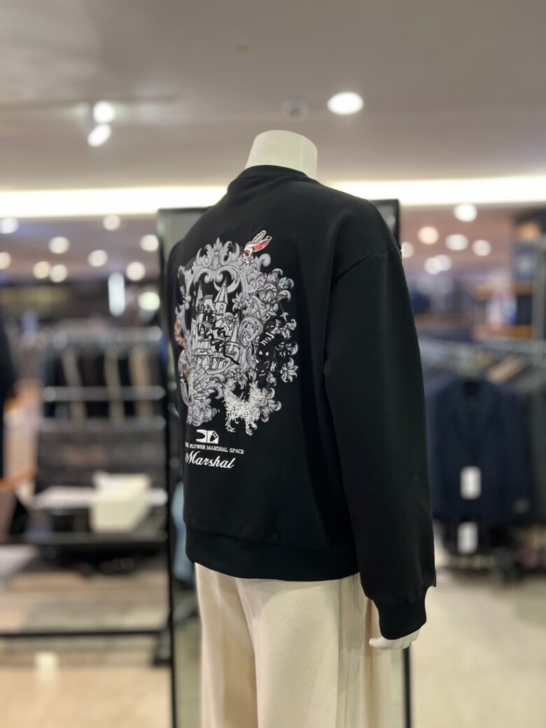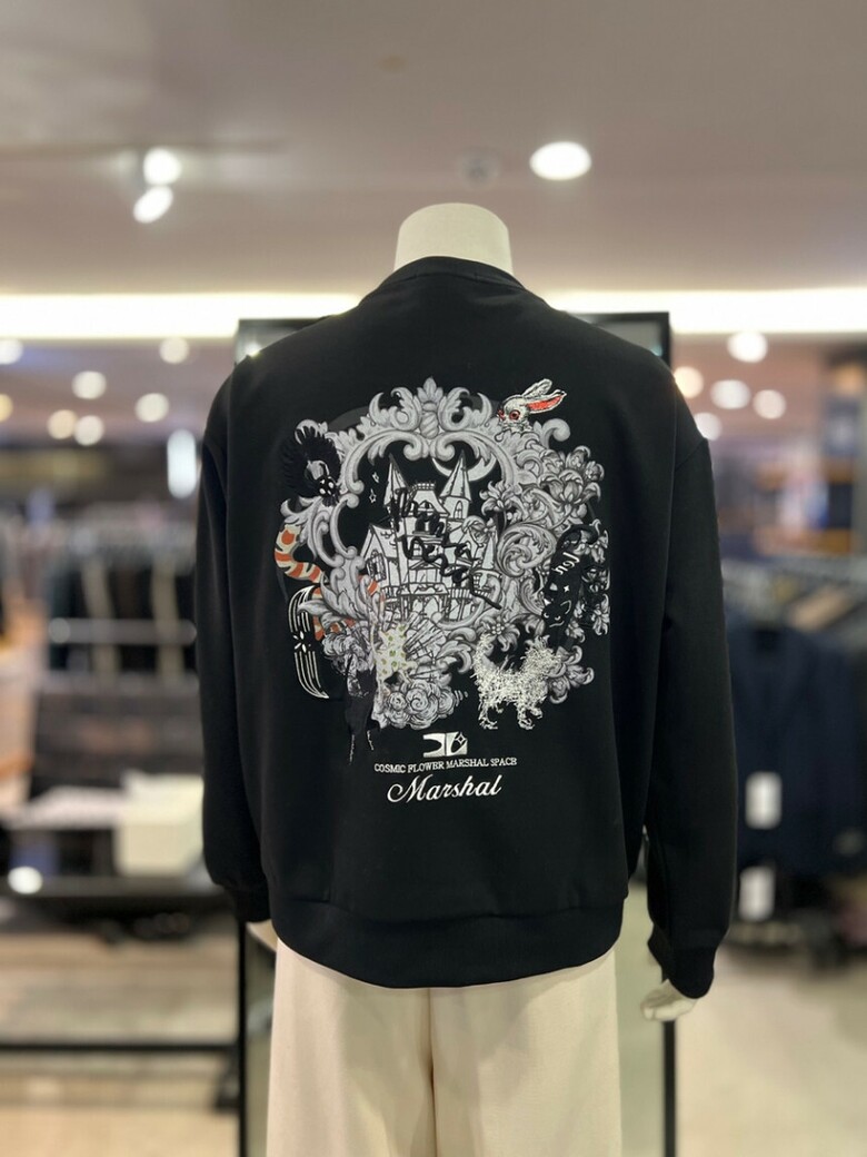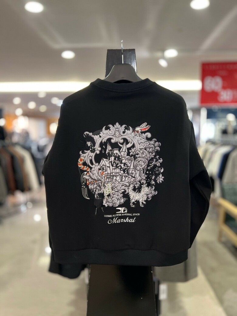 블랙 아트워크 자수 포인트 오버핏 맨투맨 티셔츠