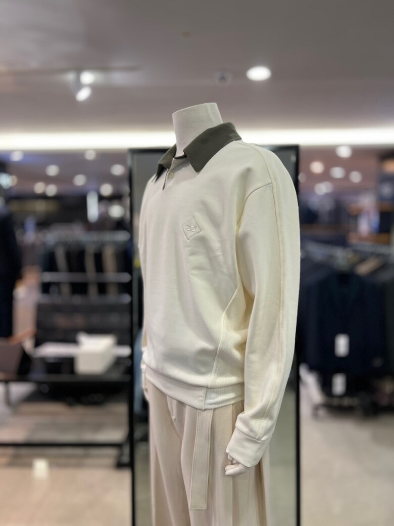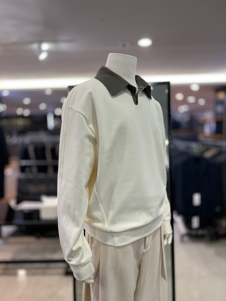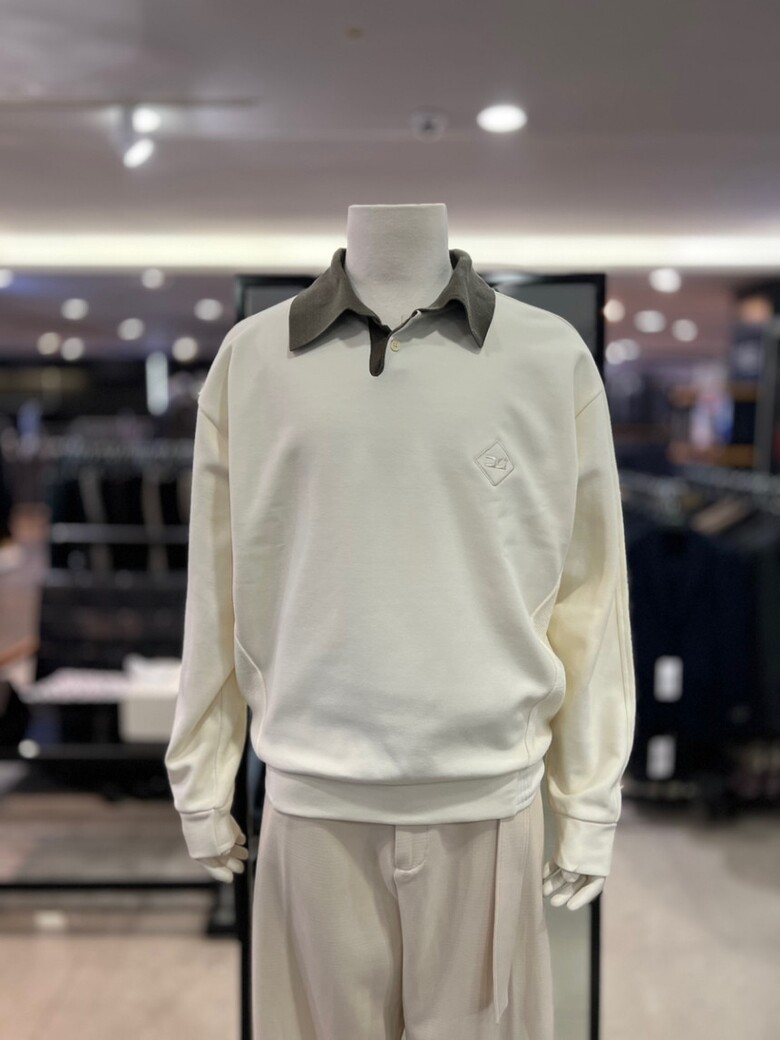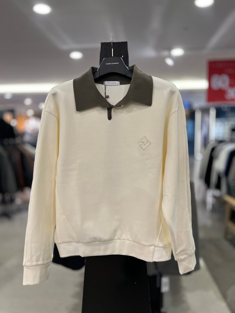 리버클래시 아이보리 니트믹스 카라배색 맨투맨 티셔츠 LKF41456