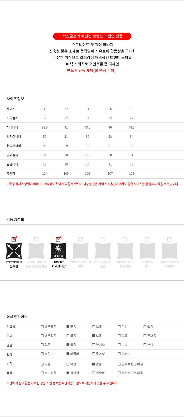 보스케 남자 가을 골프웨어 골프 일자 워싱 데님 청바지 L102405