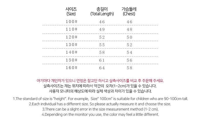 사이즈 : 100,110,120,130,140,150,160