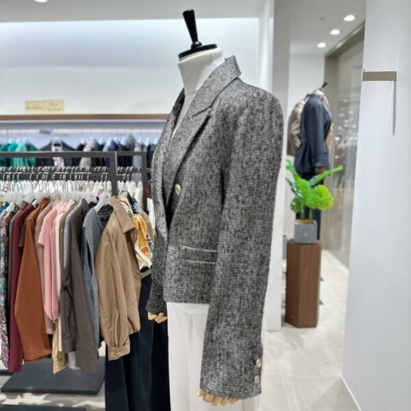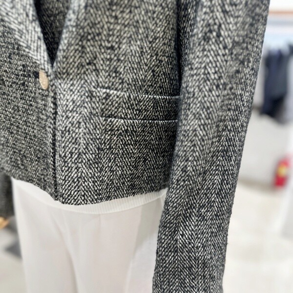 멜란지 컬러가 포인트인여성 크롭 자켓입니다