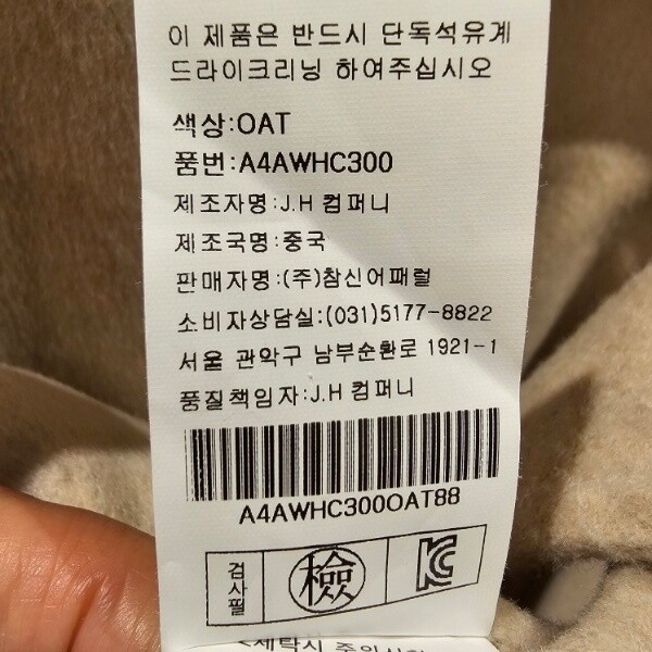 제품소재 : 모 50% 폴레에스터 43% 캐시미어 3% 레이온 2% 레이온 2% 나일론 2% / 배색 모 50% 아크릴 50%