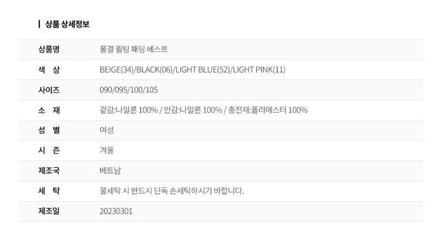 6. 세탁방법 및 취급시 주의사항 | 상품상세참조 |