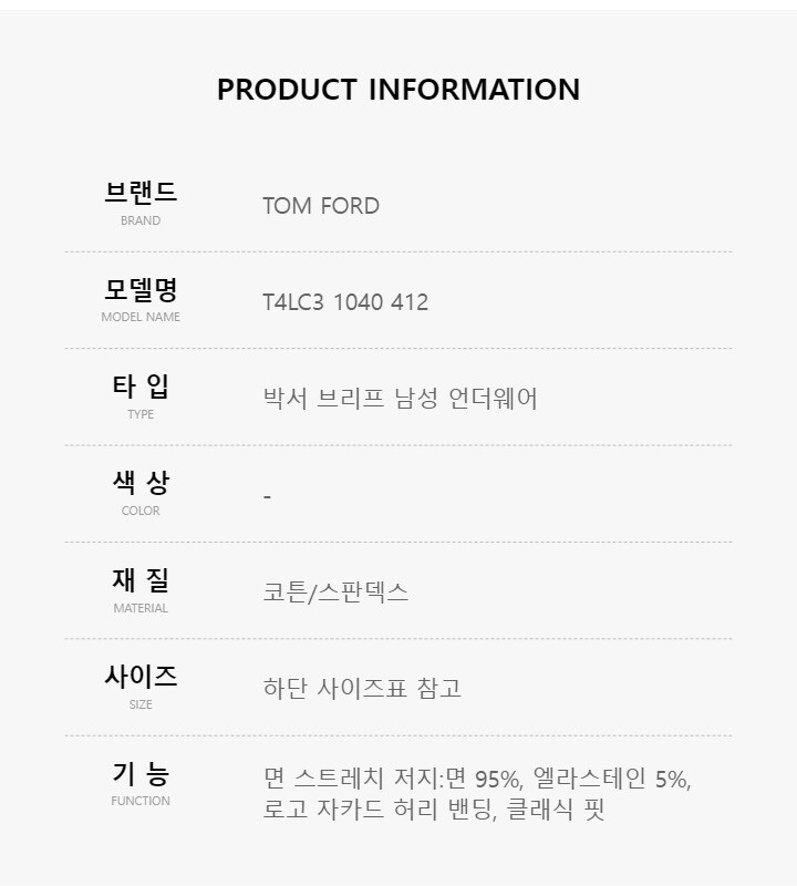 톰포드 T4LC3 1040 412 박서 브리프 남성 언더웨어 속옷