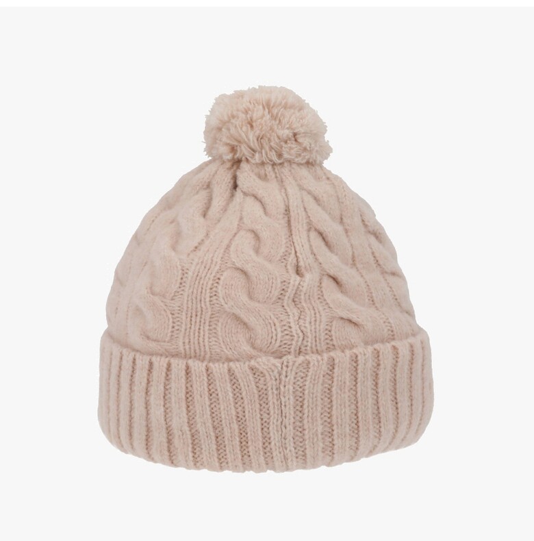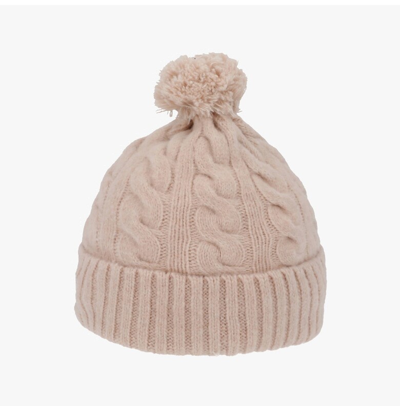 캉골 K4460SM LIGHT PINK 케이블 니트 폼폼 비니 모자