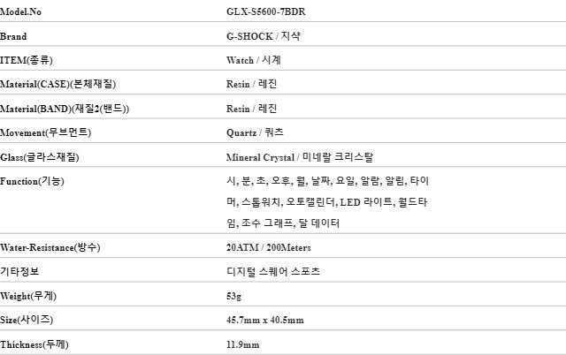 지샥 GLX-S5600-7BDR (GLX-S5600-7) 지라이드 디지털 스퀘어 스포츠 여성 우레탄시계
