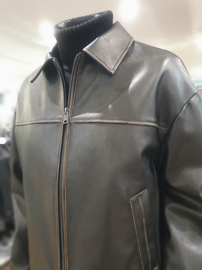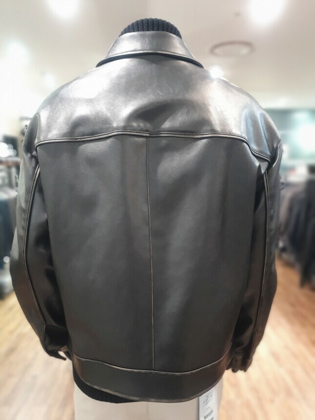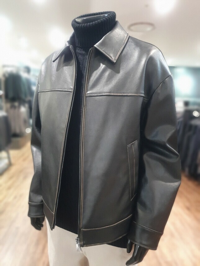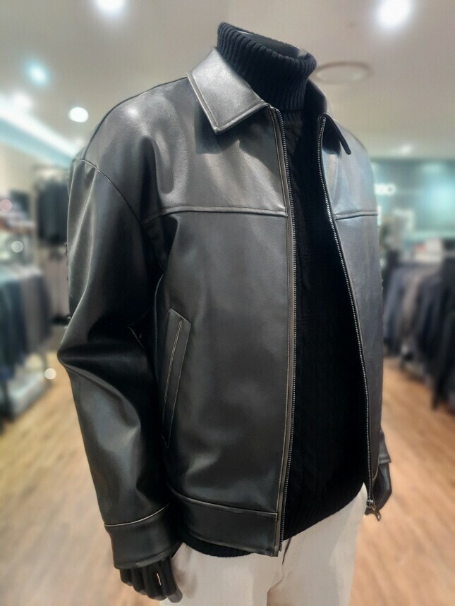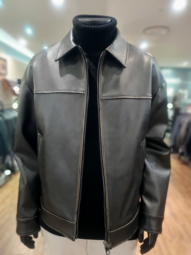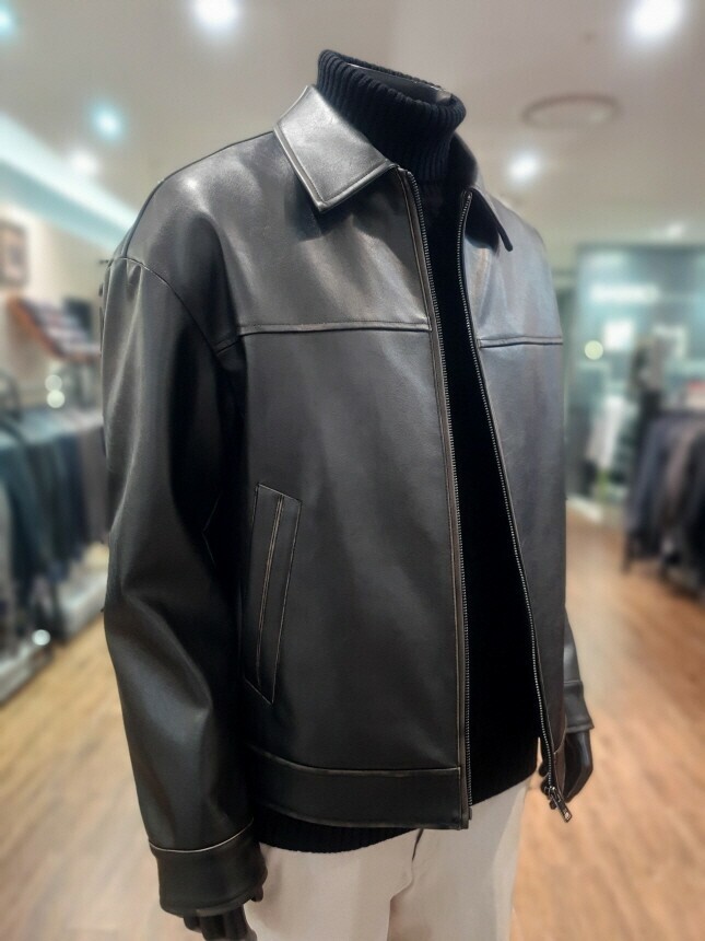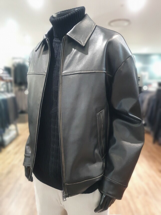 [바쏘옴므] 블랙 워싱 비건레더 오버핏 점퍼