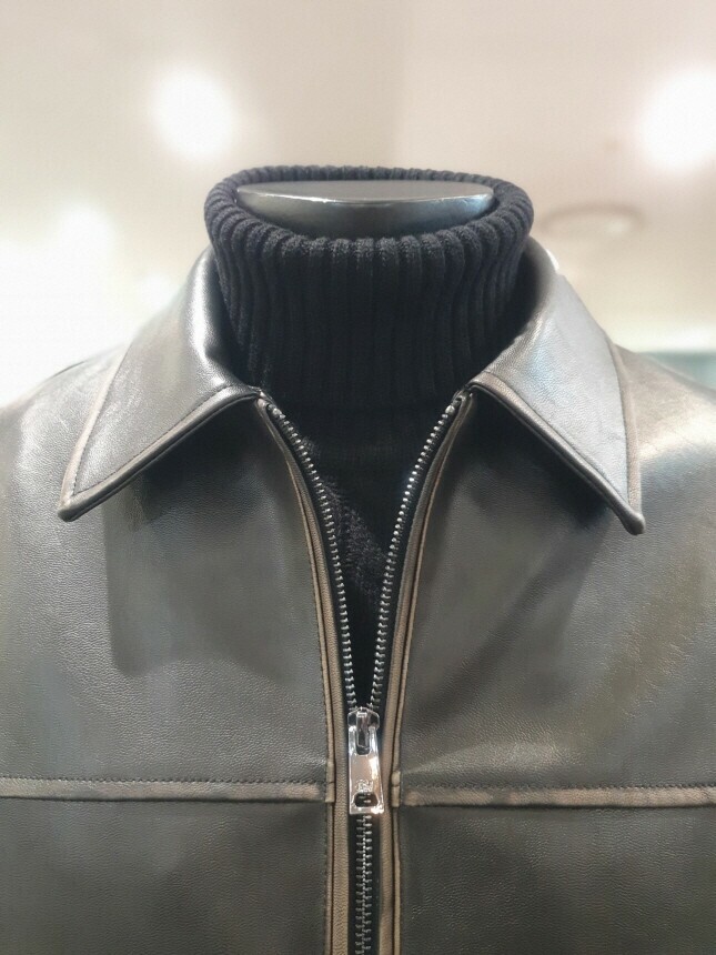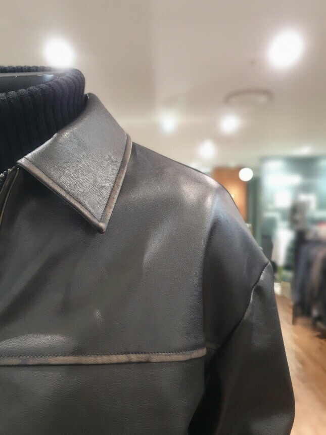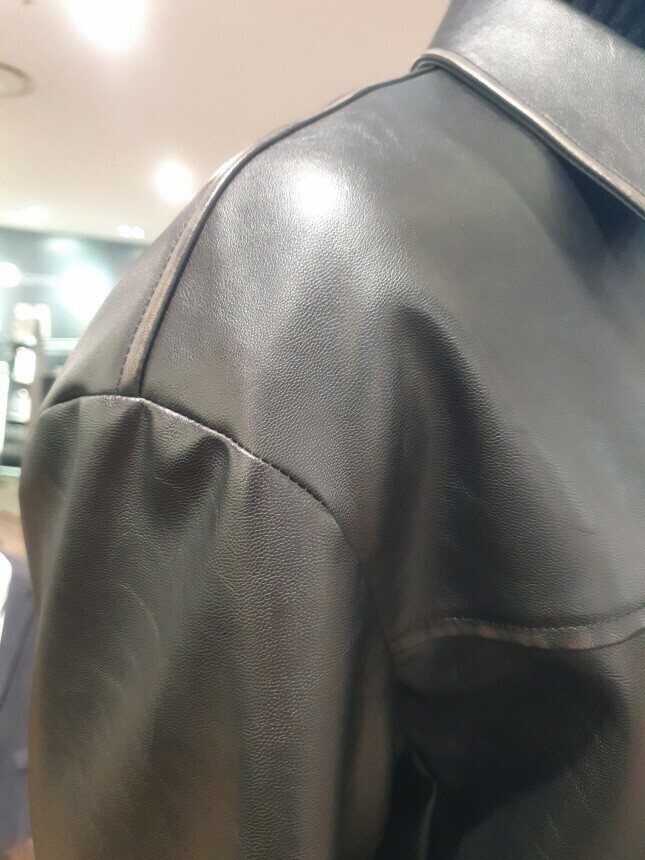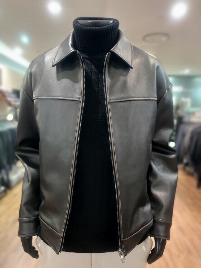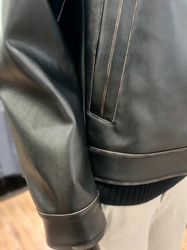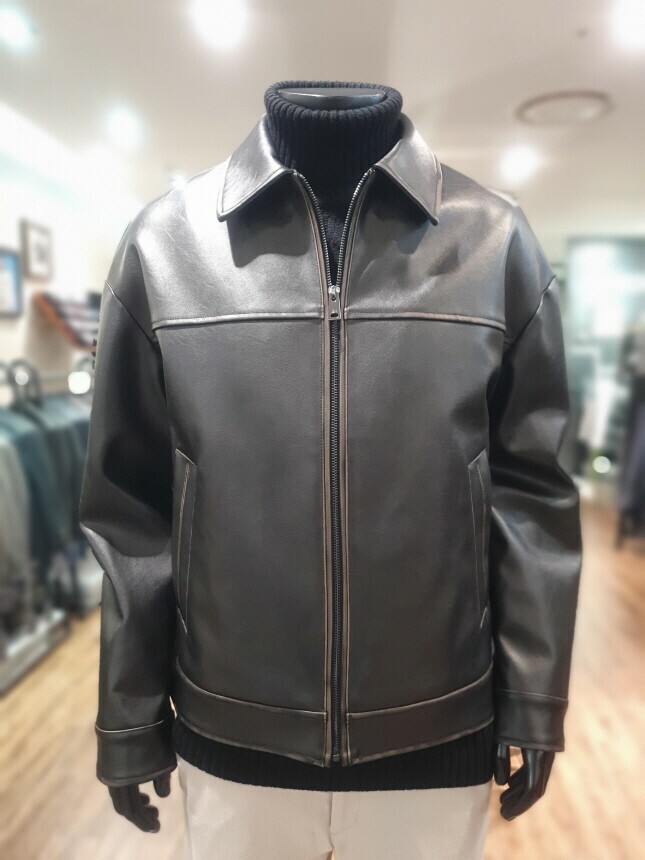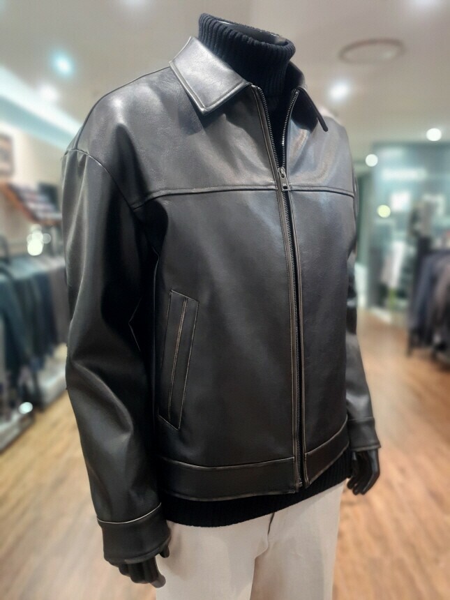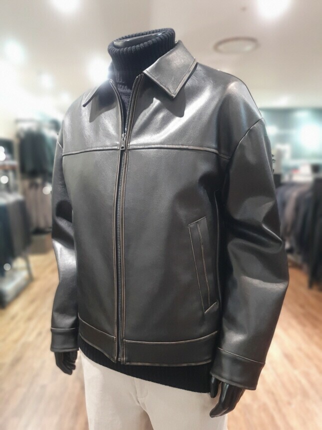 [바쏘옴므] 블랙 워싱 비건레더 오버핏 점퍼