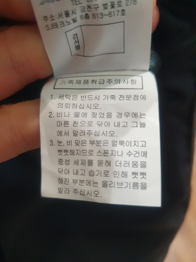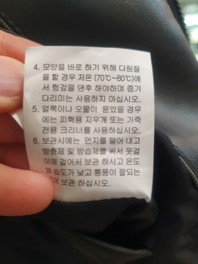| 6. 세탁방법 및 취급시 주의사항 | 가죽 전문점에 의뢰하세요. |