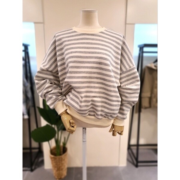 KKTSOB01GR_스트라이프 기모 맨투맨 그레이
